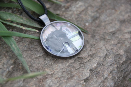 Kette Pferd am Putzplatz silber/schwarze Einfassung